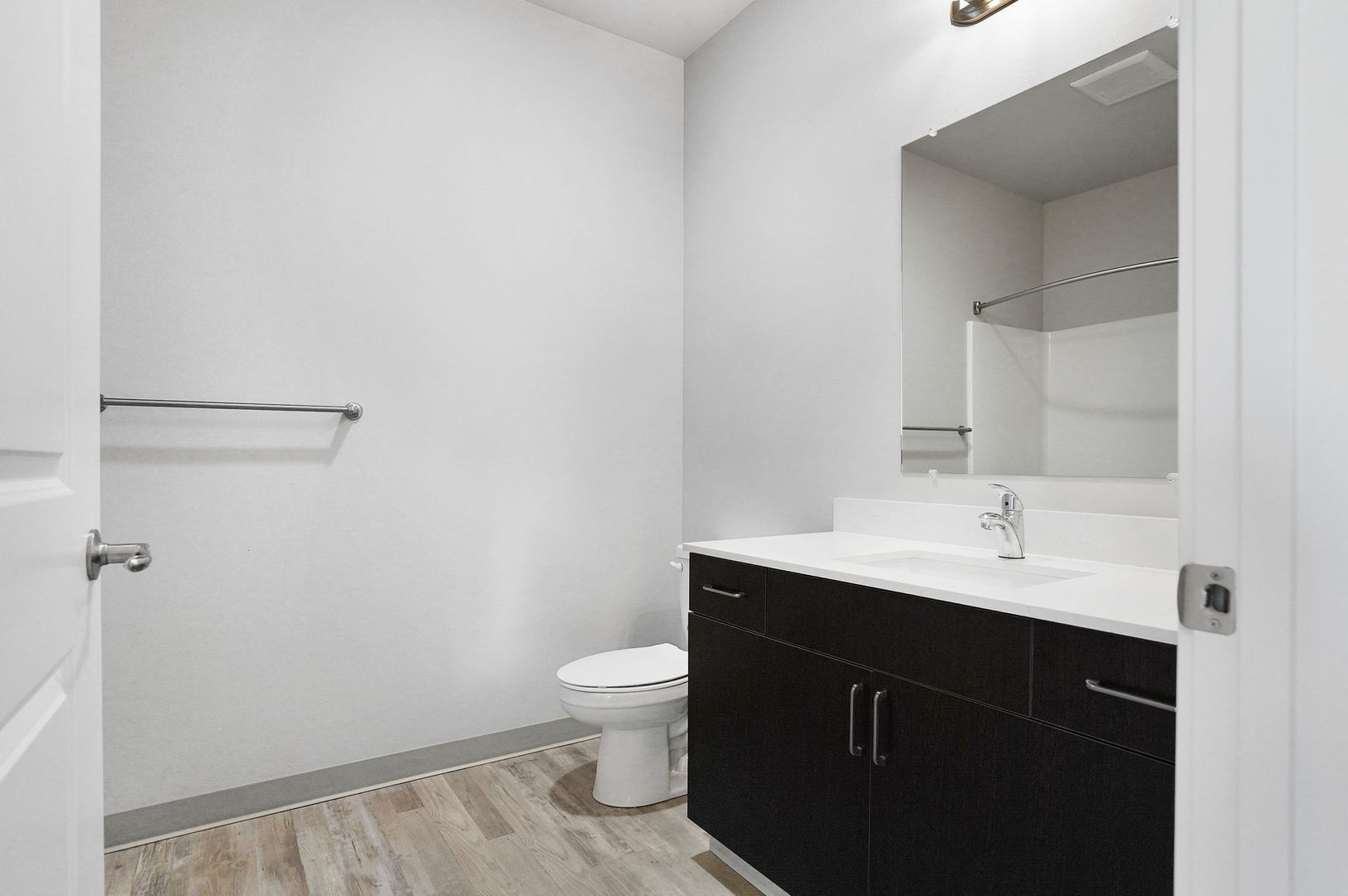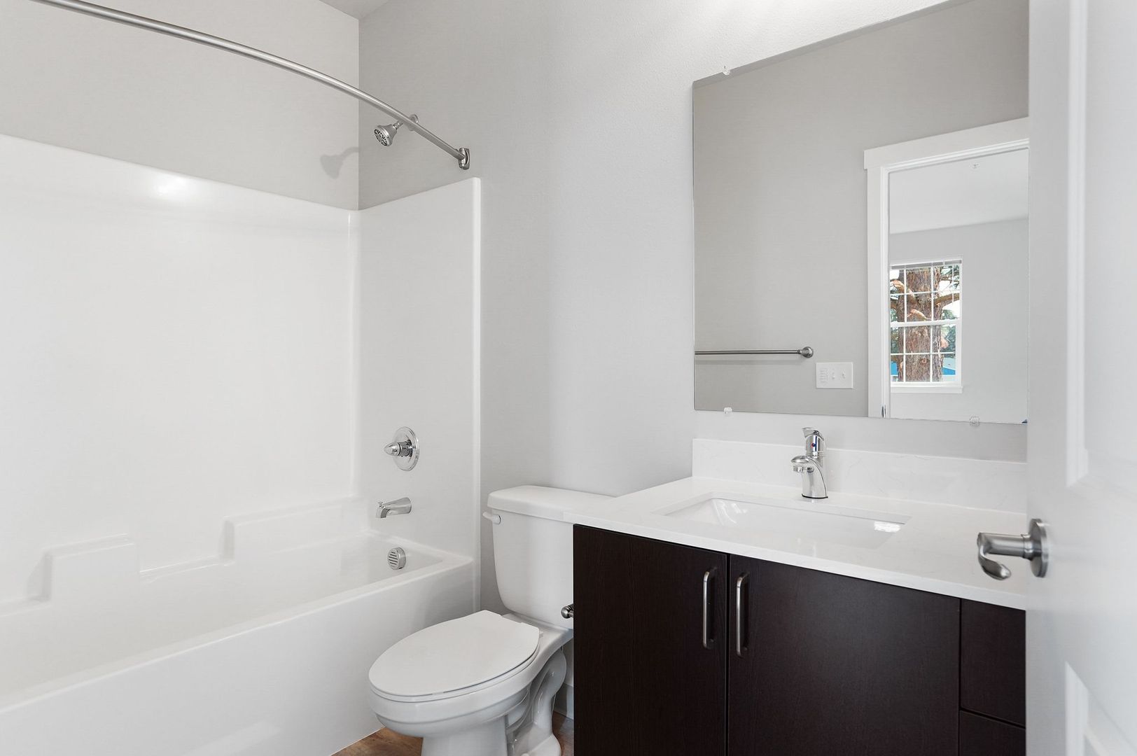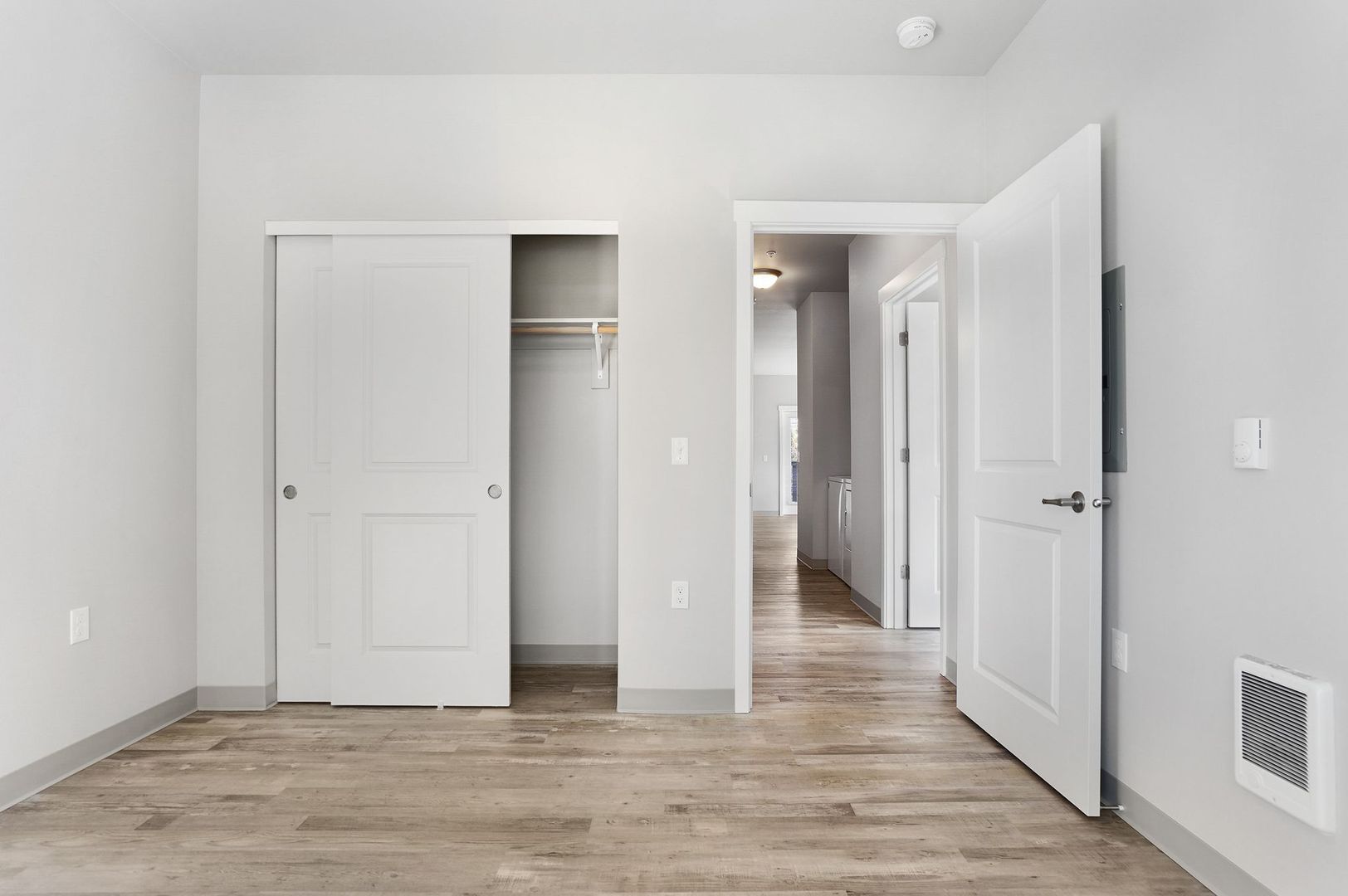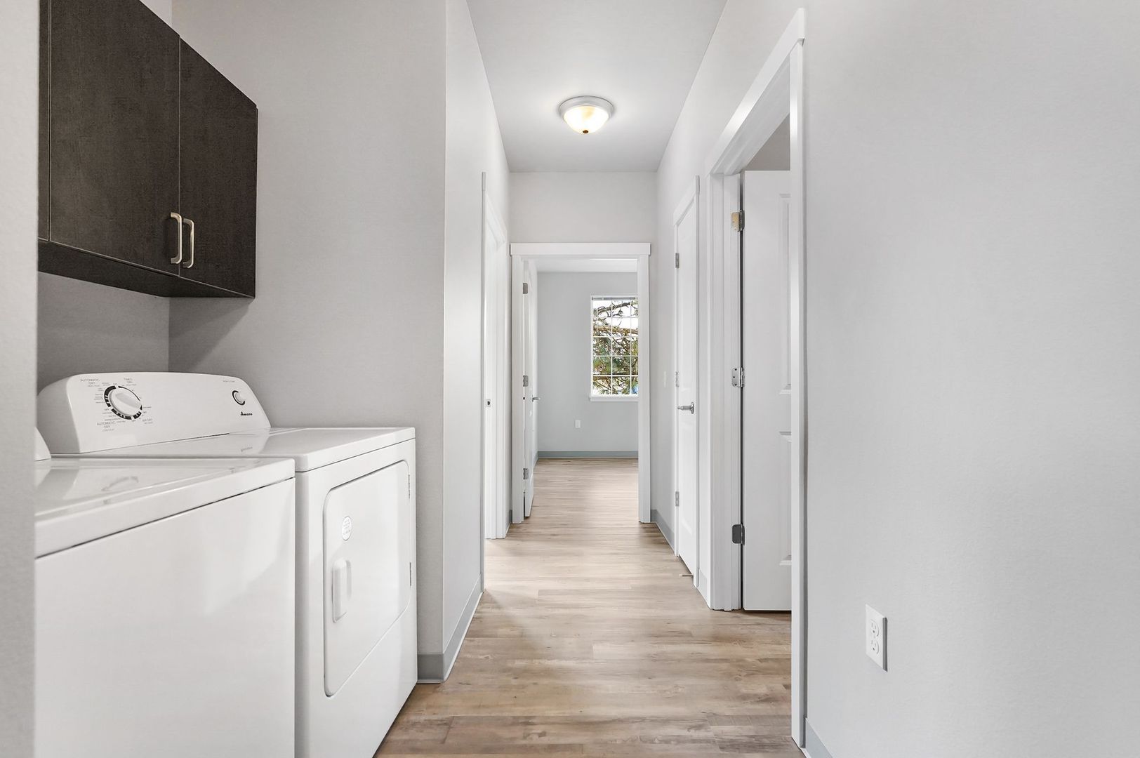 This 2 bedroom ADA apartment home is designed for the way you live. This unit features beautiful finishes like quartz counters, sleek cabinetry, and hardwood-style plank flooring, an A/C unit built in and was designed with accessibility in mind! Floor plans provide ample space and a washer/dryer set included in each unit.