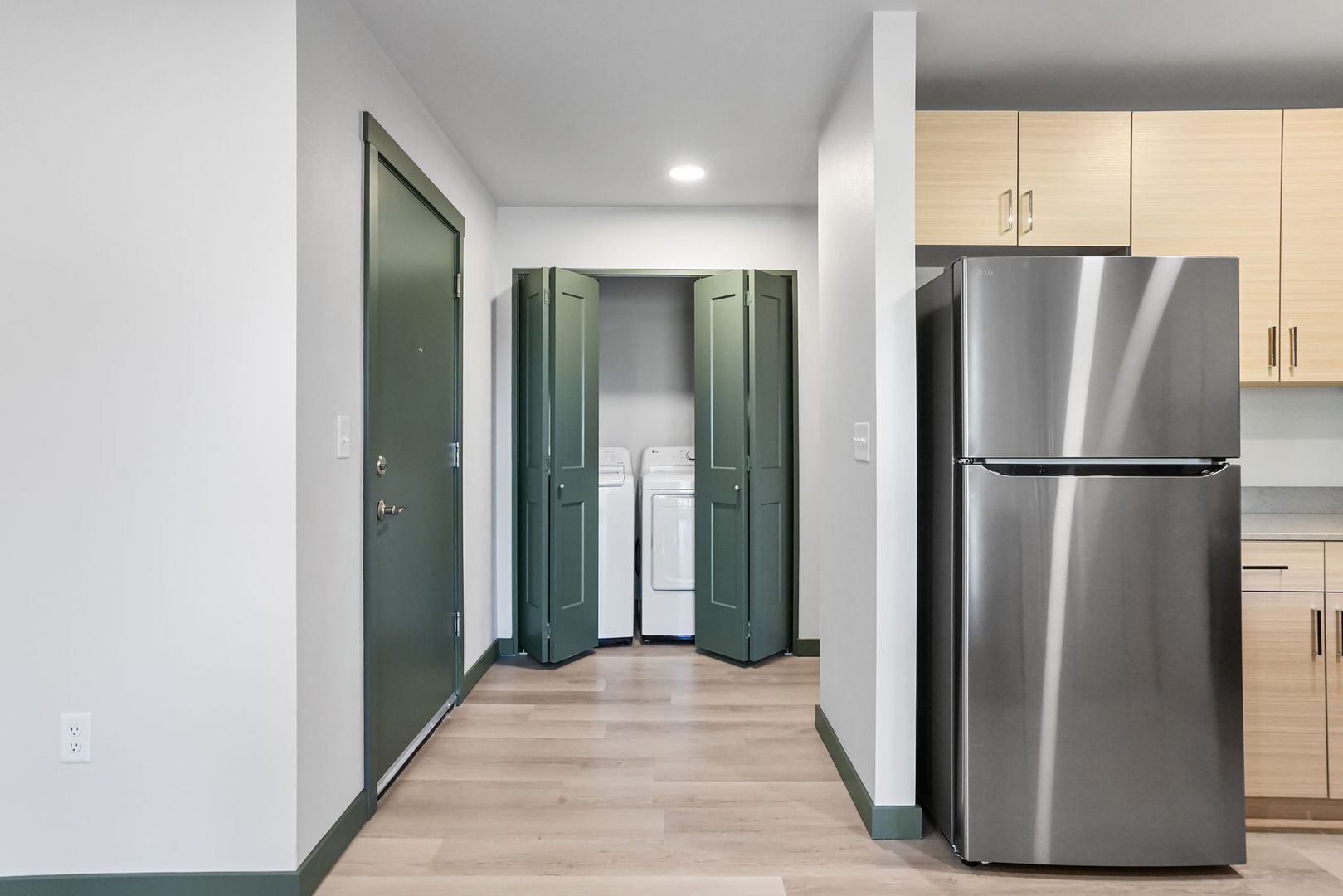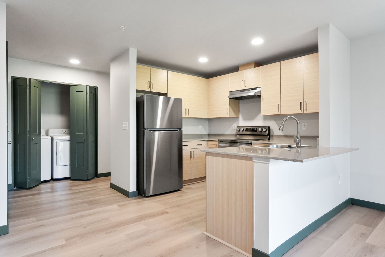 Welcome to the brand new Hickory Lake Apartments in Lebanon! This modern apartment community boasts luxury vinyl plank flooring, stainless steel appliances, and soft close cabinets for a sleek and stylish living space. Enjoy the comfort of a built-in A/C unit, convenience of having a full size washer and dryer provided in each apartment home, and your own deck or patio with extra storage. Don't miss out on the opportunity to call Hickory Lake your new home!