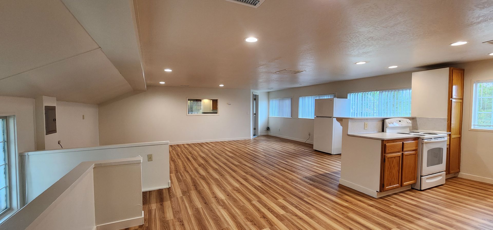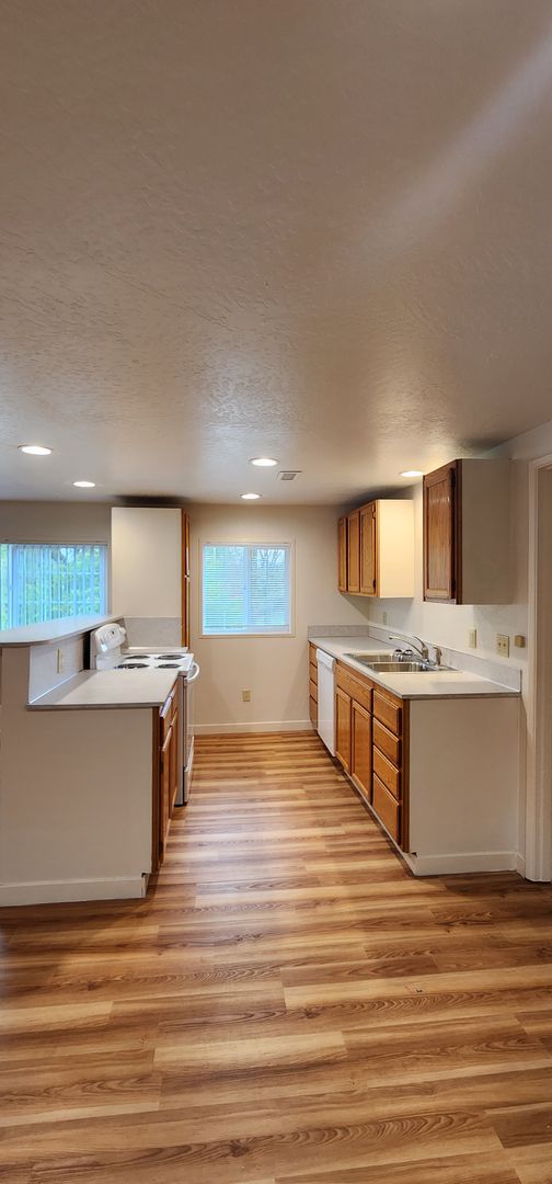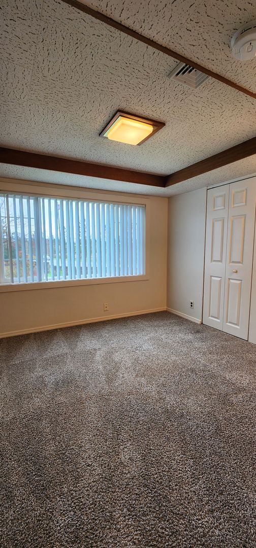 Unique living opportunity, house converted into duplex in country setting between Corvallis and Philomath. This upstairs unit boasts 4 bedrooms with newer plush carpeting, spacious living area with luxury vinyl plank flooring, office/family room with french doors, lots of energy efficient vinyl windows offering so much natural light throughout, kitchen includes 2 refrigerators, stove, dishwasher and microwave, double car garage, and lots of built-in cabinets and storage closets. Spacious common covered patio and yard as well as a shared laundry room with a washer and dryer set, utility sink, and plenty of cabinet space for storing laundry supplies. All tenants are responsible for maintaining a clean laundry room.